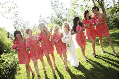 Asymetrical dresses in bright colors for bridesmaids will definitely look awesome, I think. Those are such pretty pictures.